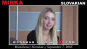 A slovak girl, Mirka has an audition with Pierre Woodman. She will answer general questions about her life and sexual fantasies and experience. Then Mirka will undress to show her body naked. She will be asked to show her body in doggy style and missionary position on a sofa.